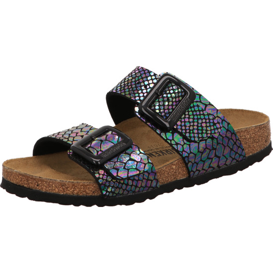 Cushion Buckle Artikel 1030932 shiny snake black, Kork-Latex-Fußbett, Synthetik, Decksohle: Veloursleder, Sohle EVA, zwei Riemen mit Dornschnalle